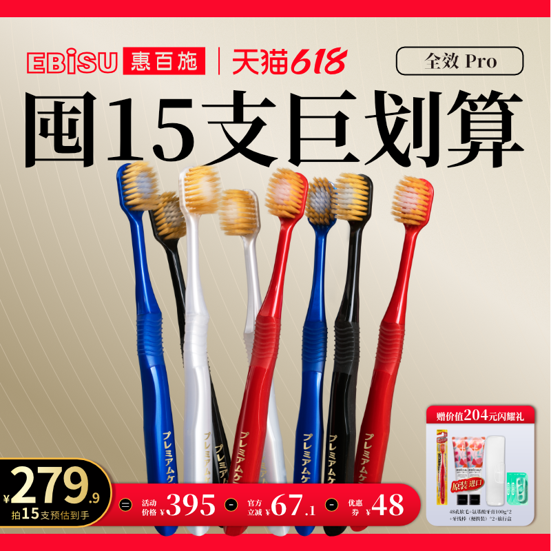 【618狂歡】惠百施48孔寬頭護齦清潔軟毛牙刷成人男女家庭旗艦店