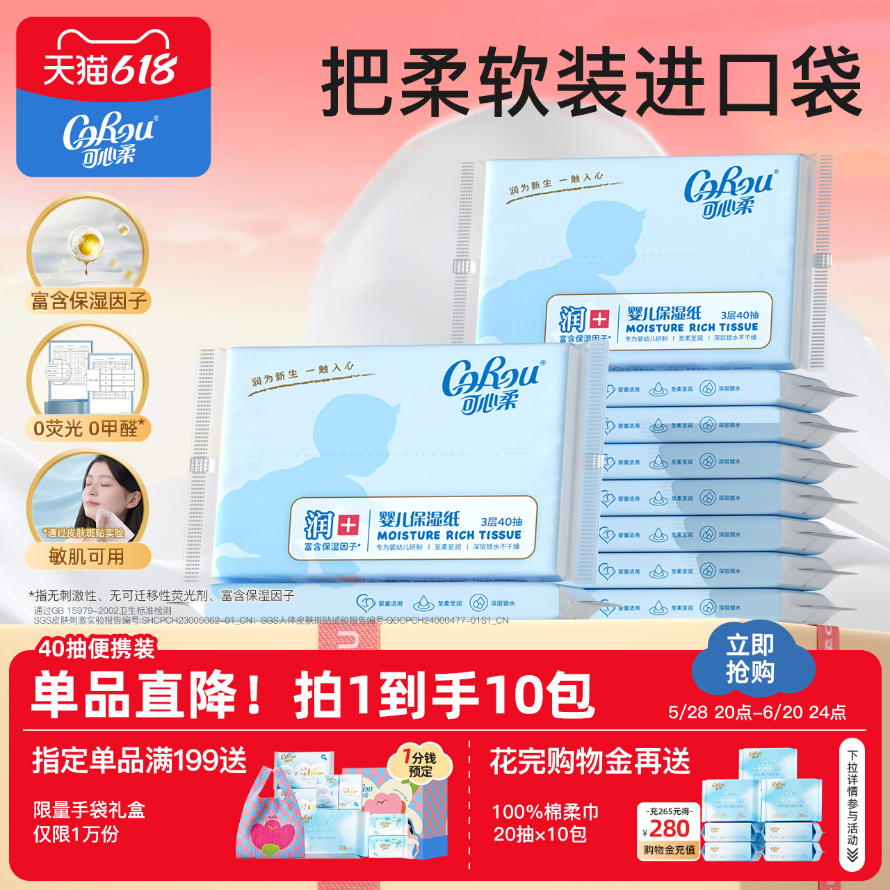 可心柔V9嬰兒柔紙巾云柔巾寶寶家用乳霜紙寶寶保濕紙巾40抽10包裝