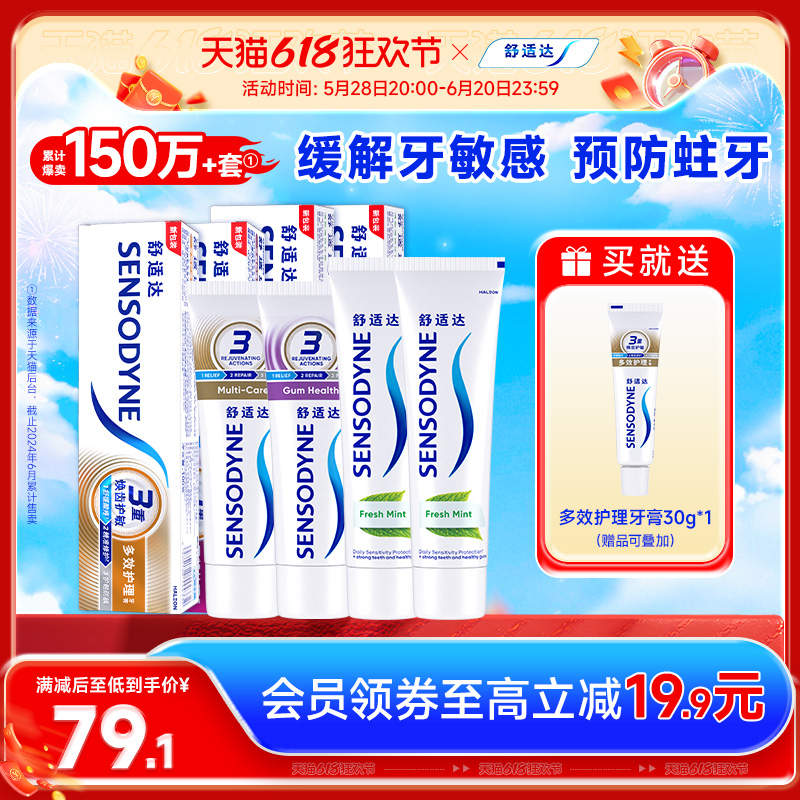舒適達抗敏感牙膏多效護理100g*4支套裝清潔口腔緩解牙敏感防蛀