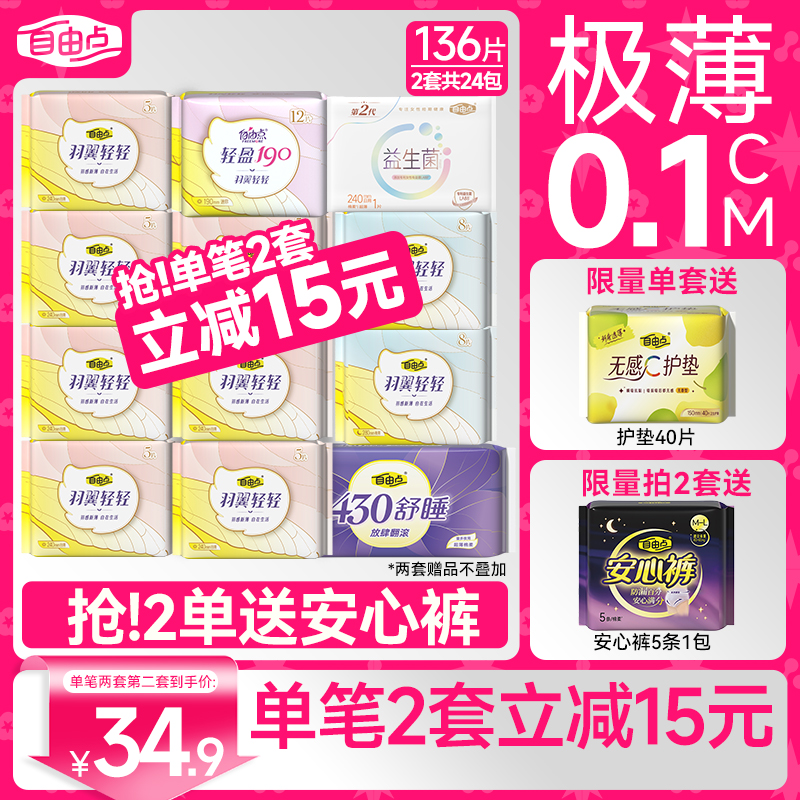 自由點衛生巾薄款空氣組合日夜用超薄姨媽巾官方旗艦店正品
