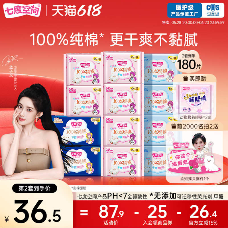 【孟子義同款】七度空間少女純棉超薄日用夜用組合姨媽巾衛生巾