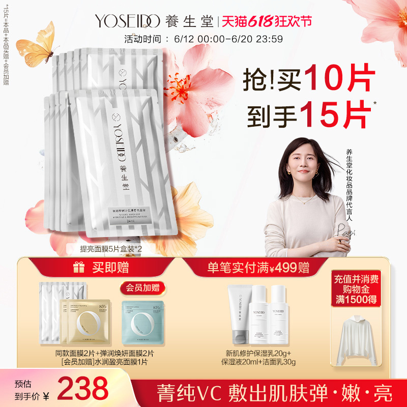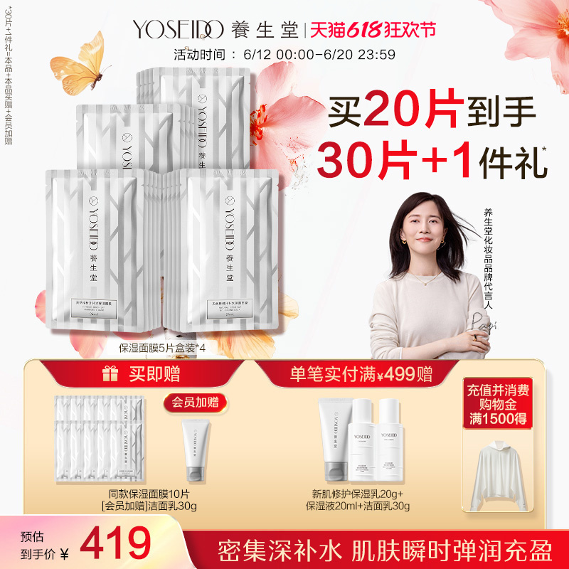 養生堂樺樹汁補水保濕面膜女面部護理深層舒緩敏感肌可用白膜5片