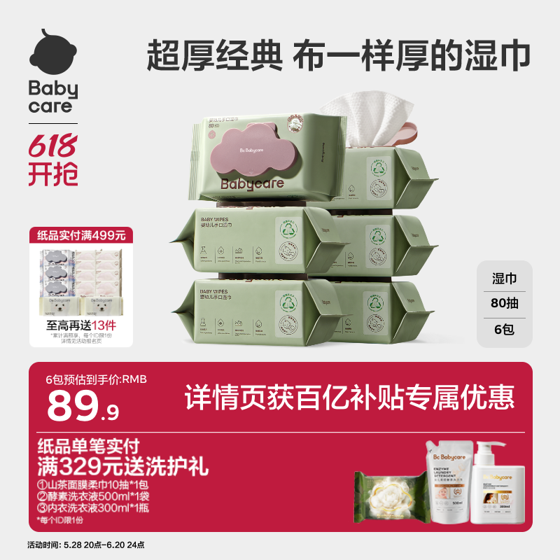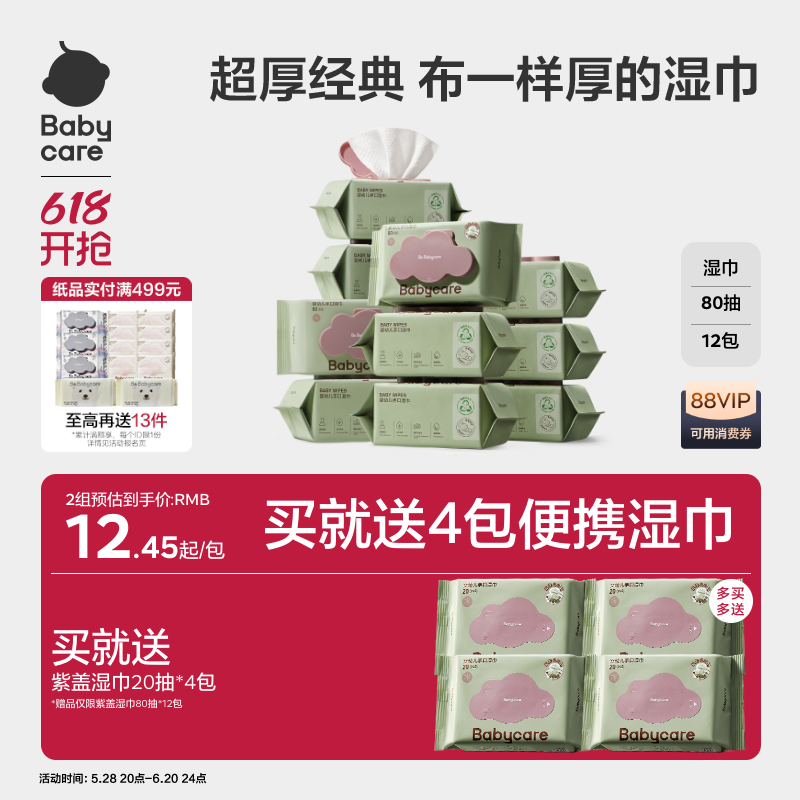 babycare嬰幼兒濕紙巾手口屁專用兒童新生寶寶家庭實惠大包裝80抽