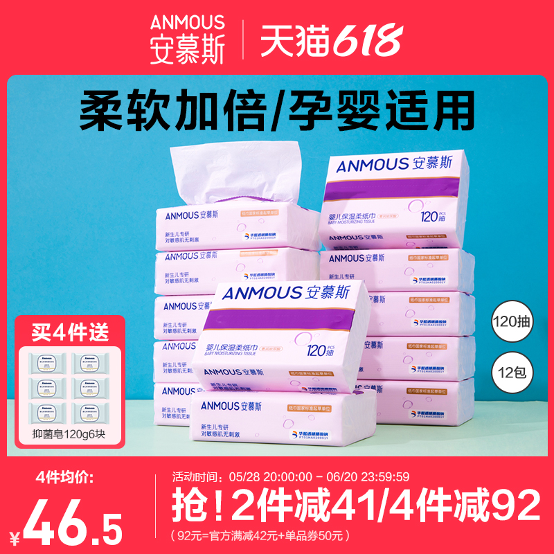 安慕斯保濕紙嬰兒云柔巾乳霜保濕柔紙巾新生兒寶寶專用超柔紙巾