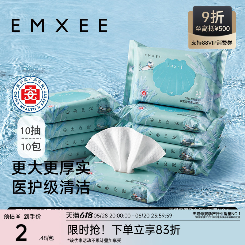 【10抽10包】嫚熙綠貝殼嬰兒濕巾小包新生兒手口可用便攜家庭清潔