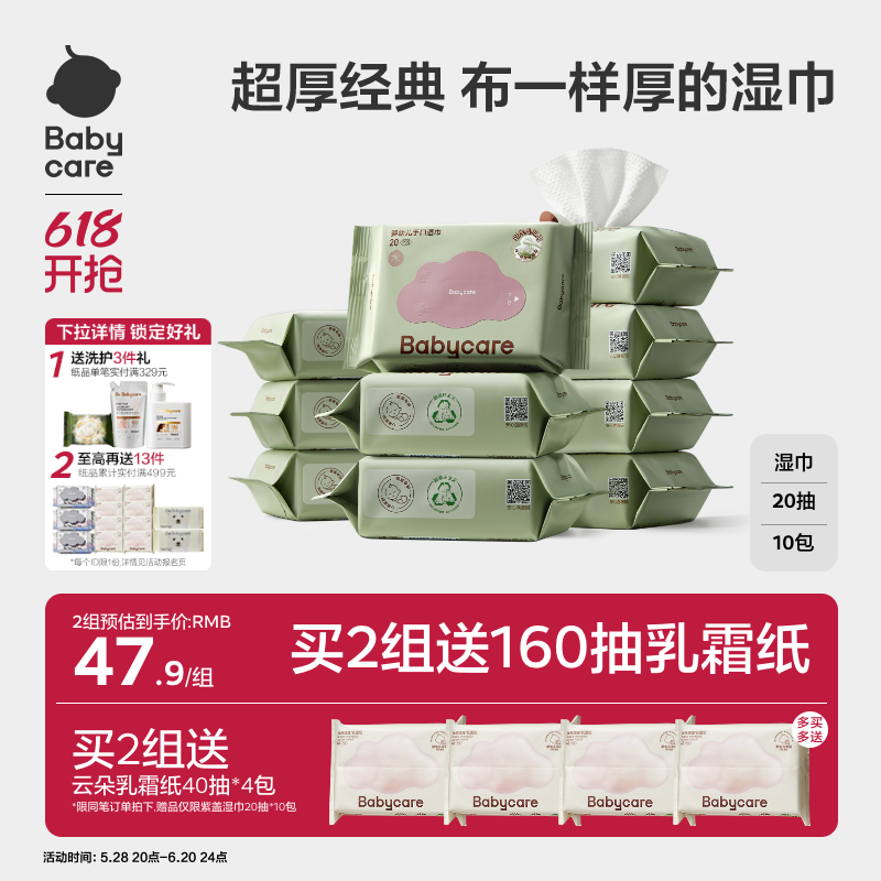 babycare嬰幼兒濕紙巾加厚手口屁專用兒童新生寶寶家庭濕巾大包裝