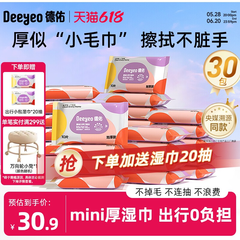 德佑嬰兒濕巾小包隨身裝學生出行(30包)嬰幼兒上學外出便攜濕紙巾
