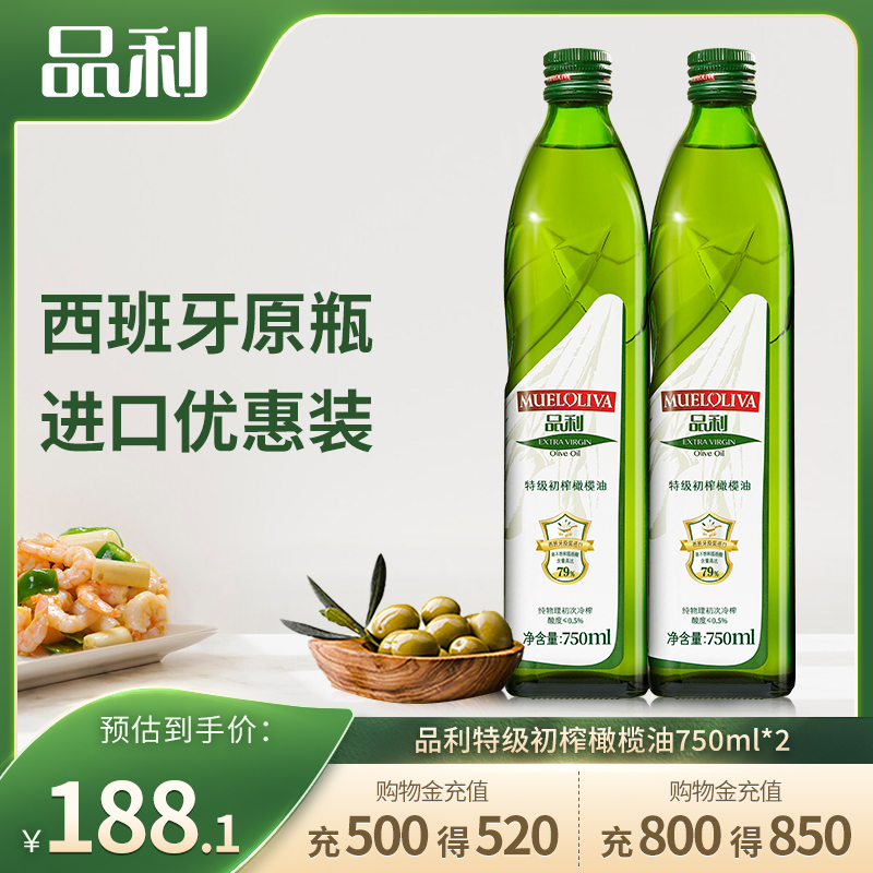 品利西班牙原裝進口特級初榨橄欖油750ml2瓶烹飪食用油非精煉送禮