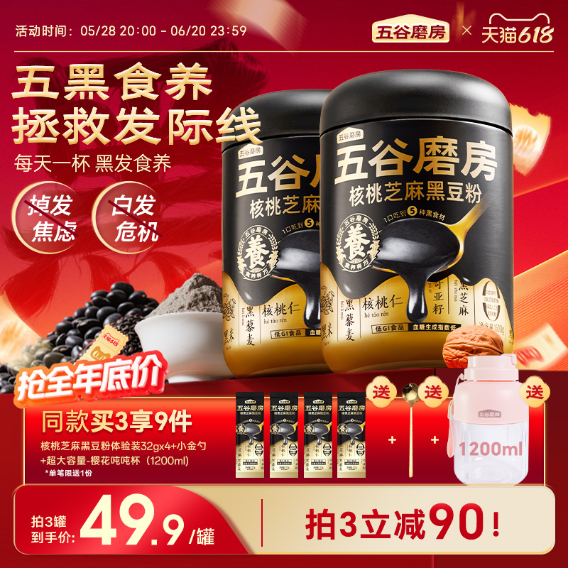 五谷磨房無糖黑芝麻糊600g核桃芝麻黑豆粉黑之養五黑粉健康早代餐
