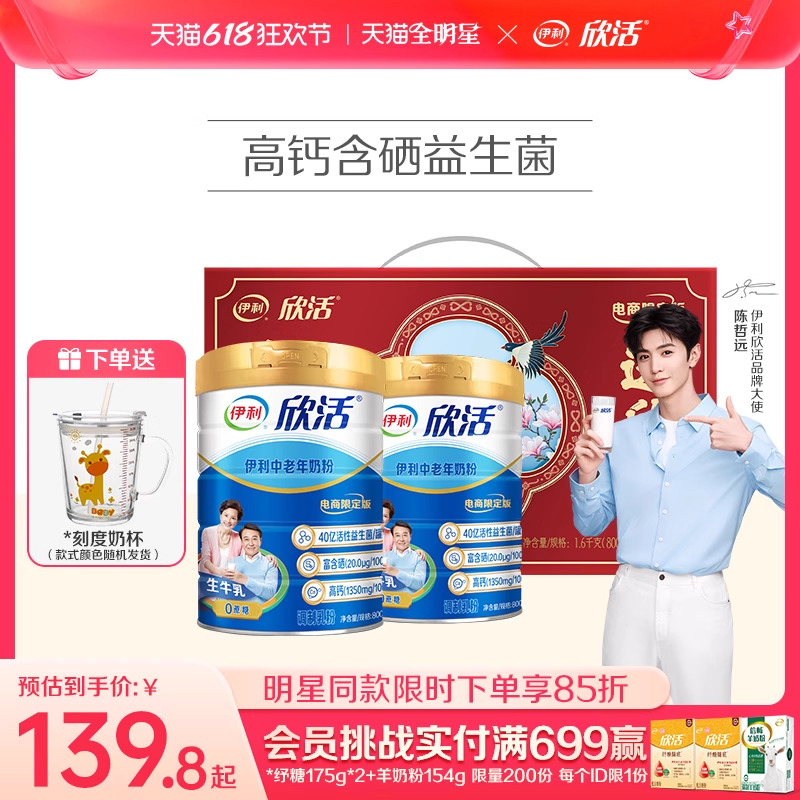 伊利欣活中老年奶粉高鈣營養品成人奶粉送禮老年人正品官方旗艦店