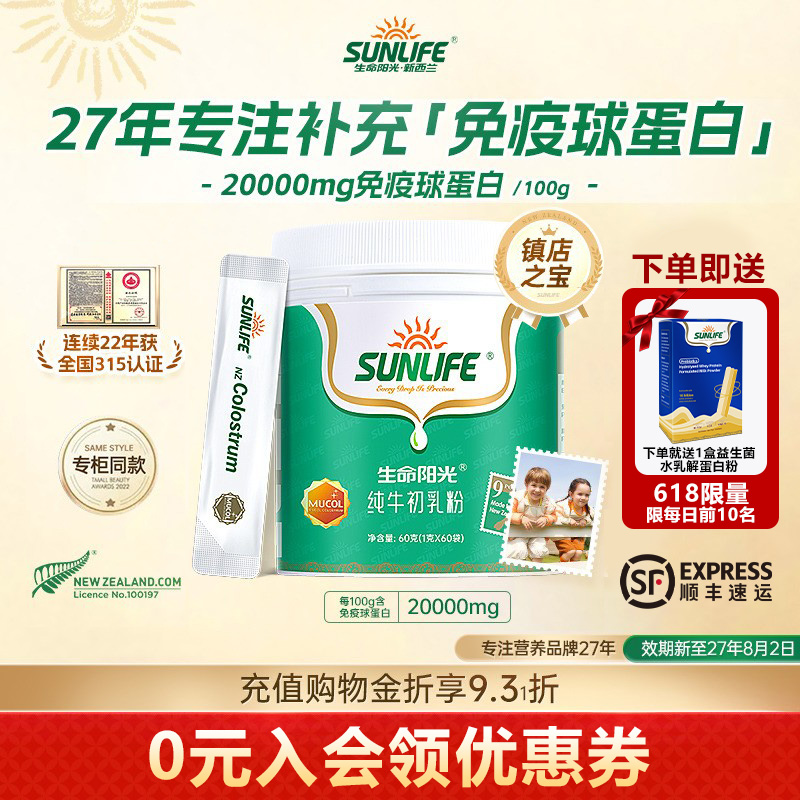 生命陽光進口純牛初乳粉免疫球蛋白粉兒童成長營養寶媽順豐包郵