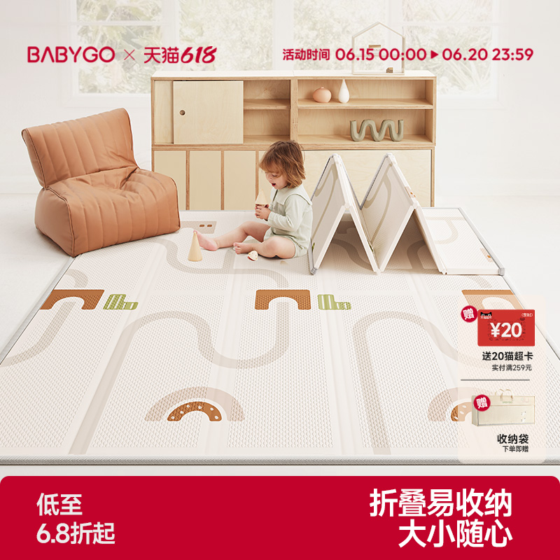 BABYGO寶寶爬行墊嬰兒加厚防摔無甲醛地墊無味XPE折疊兒童爬爬墊