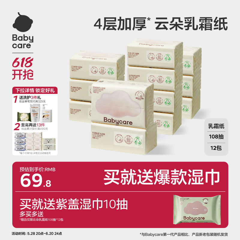 babycare云朵乳霜紙嬰兒專用云柔紙巾寶寶柔膚衛生抽紙實惠裝家用
