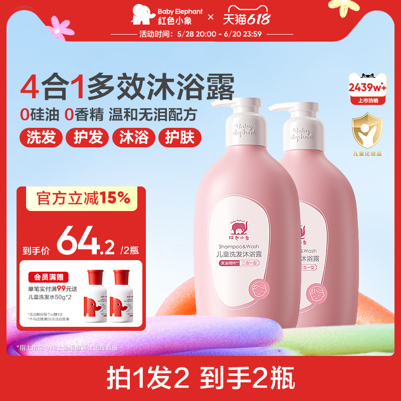 紅色小象兒童洗發沐浴二合一3歲以上寶寶沐浴乳洗頭溫和清潔正品