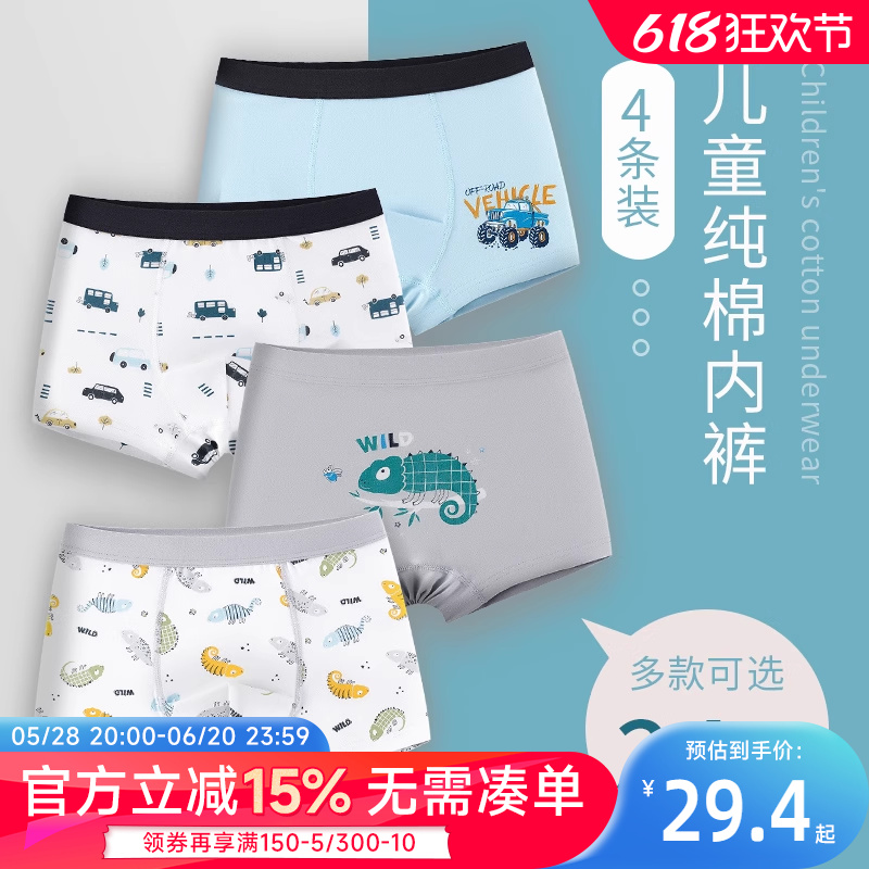 貝貝怡兒童純棉內褲男童女童平角褲全棉寶寶小中大童短褲四角褲