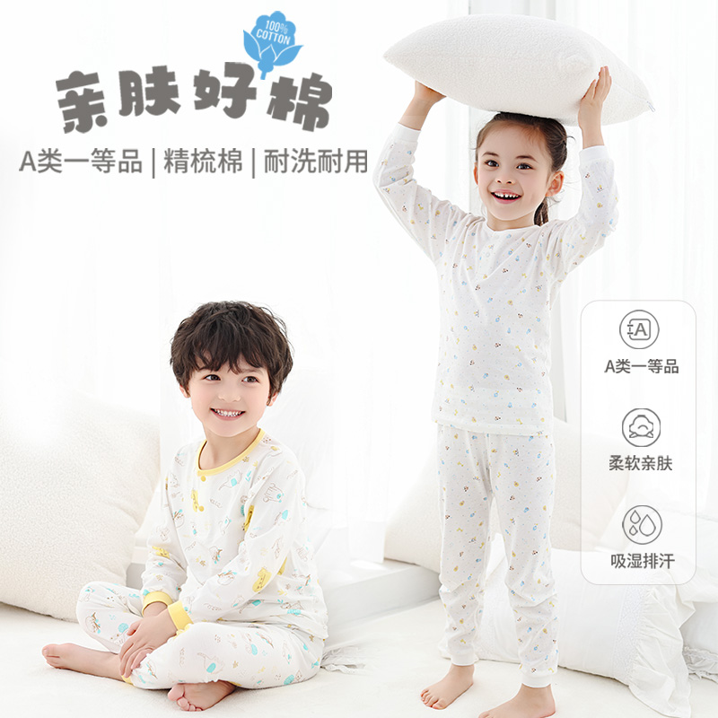 麗嬰房兒童A類純棉內衣套裝男童女童夏季睡衣打底長袖空調家居服
