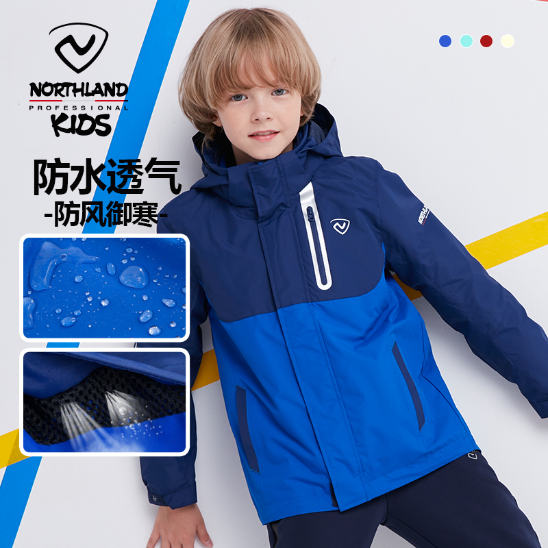 諾詩蘭兒童沖鋒夾克外衣三合一可拆卸男童大童春秋外出女童厚外套