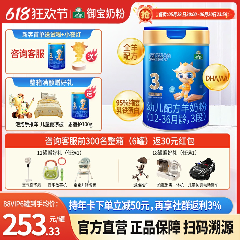 買5發6】御寶恩蓓護嬰幼兒配方羊奶粉12-36月3段700g新國標旗艦店